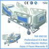 THR-MB558 5 functions manual hospital bed with X-ray CRP THR-MB558 4 crank 5 functions manual hospital bed Descriptions: This hospital bed is with 5function ,X-ray,CPR etc. Metal frame of 200cm *92cm with coated painting Total length 220cm*width 100cm(including head and foot fence and side fences) 4 crank on frontal side of bed(foot fence) Central brake system with 125cm wheels Aluminum fence,folding to side(from head side to foot side)with lock system 4 corners must have hole for IVpole 4 corners must have anti crash system Back section radiolucent,with 14’’*17’’ray*cassette holder CPR system 3’’ cushion,antistatic,washable and water proof. Movement: Trendelemburg and inverse trendelemburg 15°both Back section70°Knee section25° Height 400mm to 800mm